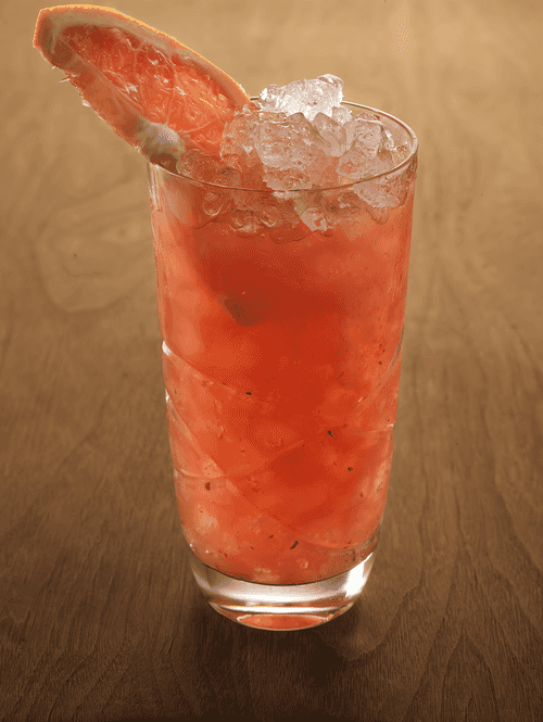 Стакан хайбол наполнить колотым льдом и через стрейнер влить коктейль из шейкера. Украсить долькой грейпфрута.