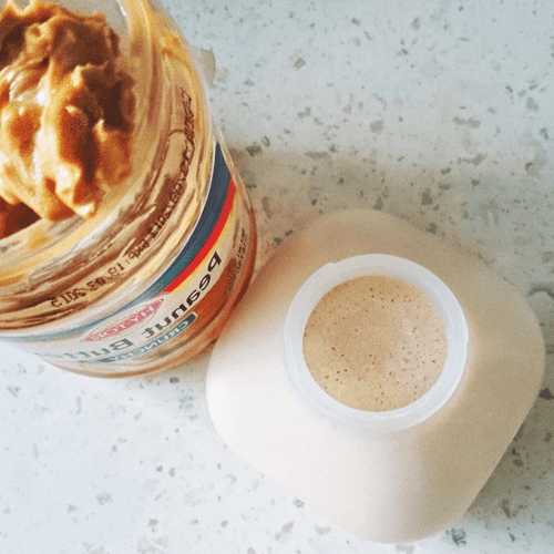 Добавить к получившийся основе арахисовое масло и снова недолго перемешивать в блендере или миксере.