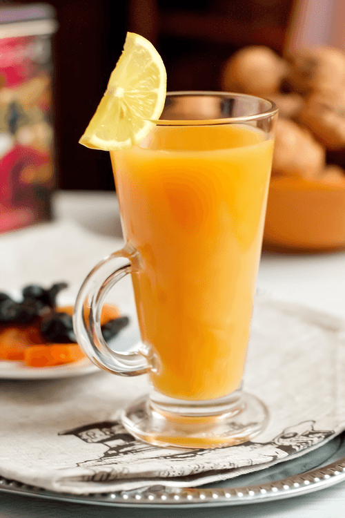 Смешиваем в ковшике сок и ликер, выдавливаем туда же сок из половинки лимона. Ставим на плиту и хорошенько нагреваем, но не кипятим. Наливаем в бокалы, украшаем ломтиком лимона или апельсина и подаем.