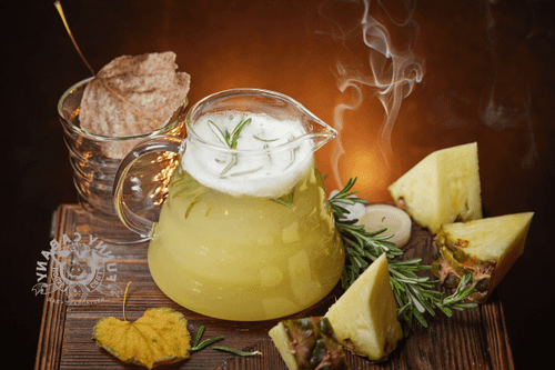 Согревающий напиток Хэрбал тропик — это настоящий кусочек тропиков в холодный день. Его происхождение связано с экспериментами американских барменов, стремящихся создать напиток, который не только согревает, но и радует насыщенным фруктовым вкусом. Гармония ананасового сока и пюре, дополненная ванильным сиропом, создает сладкую и экзотическую основу. Кафирский лайм добавляет легкую цитрусовую кислинку, а розмарин придаёт утончённый аромат. Напиток идеально подходит для зимних вечеров или уютных посиделок, наполняя пространство теплом и расслабляющей атмосферой. Его можно пить самостоятельно или подавать как часть праздничного ужина, создавая настроение тропического уюта даже в самый морозный день.