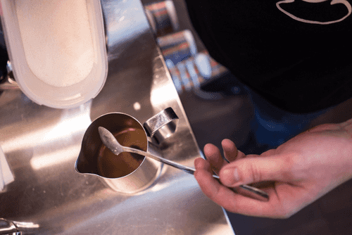 Взбить до образования однородной устойчивой пены. Перелить в подогретую чашку и подавать. В кофейнях кофе взбивают пароотводом. Дома же можно взбить обычным капучинатором на батарейках, в таком случае сливки должны быть подогреты.