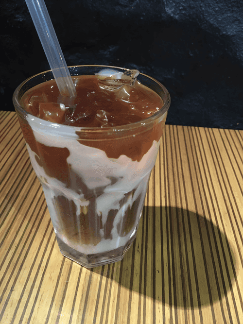 Легкость приготовления удивляет: вместо традиционного сахара и сливок используем сгущенное молоко. Лед помогает сбалансировать сладость и густоту, создавая освежающий эффект. Это отличный вариант кофе в стиле «Кофе Бина».