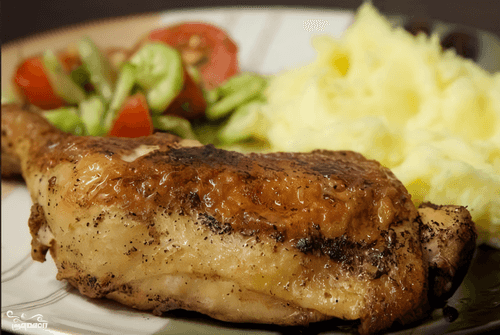 Далее добавляем в сковороду 1 стакан воды, уменьшаем огонь и готовим до полного выпаривания воды под крышкой. Курица за это время станет мягкой и дойдет до готовности.
