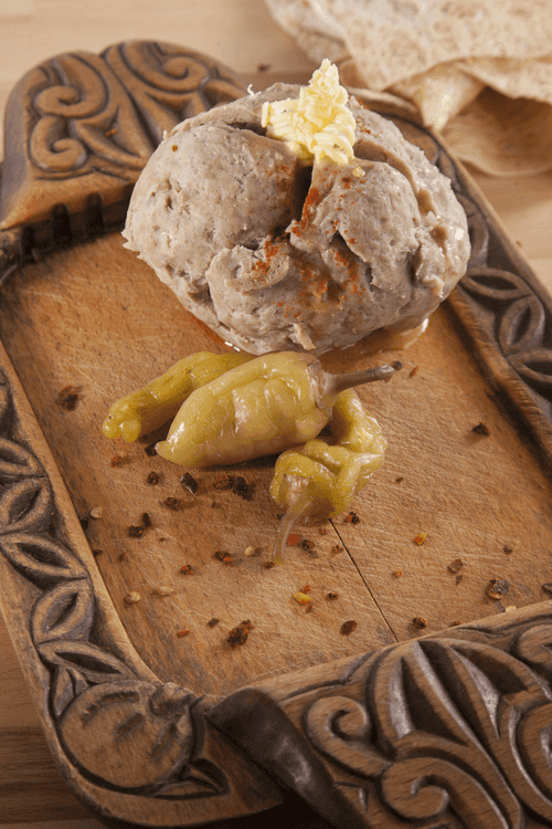 Тщательно взбивается и придается форма шара размером с суповой половник. Шар опускается в кастрюлю с холодной водой и затем варится.