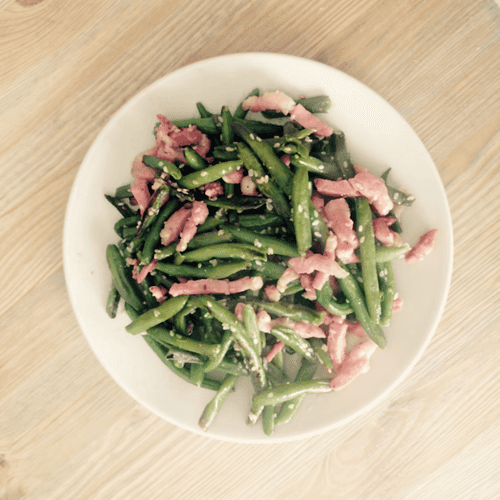Второе из стручкового гороха – яркое и ароматное блюдо тайской кухни, сочетающее нежный вкус зелёного горошка с пикантностью жареного бекона и чеснока. Тайская кухня славится умением балансировать текстуры и вкусы, и это блюдо не исключение. Сладковатый горошек приобретает насыщенный оттенок благодаря пряной панчетте, а белый кунжут добавляет ему лёгкую ореховую нотку. Тушение на медленном огне позволяет ингредиентам впитать ароматы друг друга, создавая гармонию в каждом укусе. Это блюдо идеально подходит как самостоятельное горячее угощение, так и в качестве гарнира к рису или лапше, подчеркивая экзотическую теплоту тайской кухни.