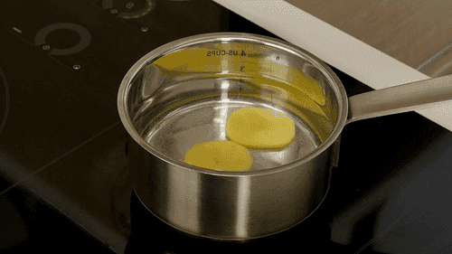 Картошку почистить, нарезать на кружочки толщиной около 4 мм, сварить до полуготовности, около двух минут после закипания.