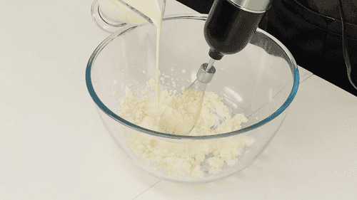 Рикотту взбить вместе со сливками, солью и перцем при помощи миксера. Затем протереть через сито и переложить получившийся крем в кондитерский мешок.