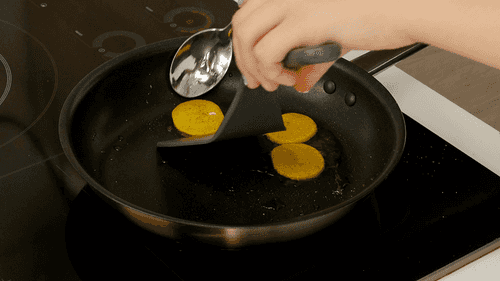 В сковороде разогреть 15 мл оливкового масла и обжарить на нем круглешки картошки, посыпав паприкой, солью и перцем. Готовую картошку выложить из сковороды. В той же сковородке обжарить несколько колечек порея до румяной корочки.