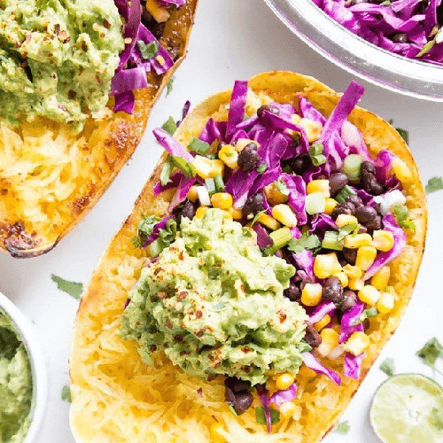 Печеная тыква с салатом из черной фасоли – яркое блюдо мексиканской кухни, сочетающее сладковатую мягкость тыквы с насыщенным вкусом фасоли и свежестью овощей. Этот рецепт отражает традиции простых, но питательных блюд, в которых натуральные ингредиенты раскрывают свои вкусовые оттенки. Запеченная тыква становится идеальной основой, а салат из фасоли, кукурузы и зелени дополняет ее легкой остротой и свежестью. Авокадо, превращенное в нежное пюре с лаймом и тмином, добавляет кремовую текстуру и легкую кислинку. Блюдо не только радует вкусом, но и обладает высокой пищевой ценностью – оно богато клетчаткой, белками и витаминами. Отлично подходит как самостоятельное блюдо или гарнир к мясу или рыбе.