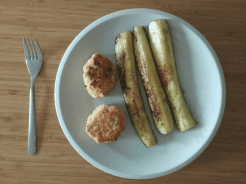 Котлеты из лосося и трески с гарниром из цукини