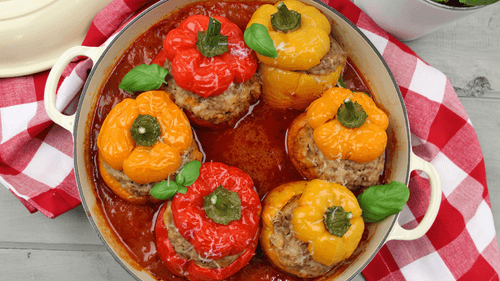 Фаршированный сладкий перец — это яркое и ароматное блюдо болгарской кухни, пропитанное теплотой домашнего очага. Считается, что традиция фарширования овощей пришла из Османской империи, но Болгария добавила свой колорит, сочетая мясо, рис и овощи. Сладкий перец, наполненный сочным фаршем, нежным рисом и обжаренными овощами, становится мягким и пропитывается насыщенным томатно-сметанным соусом. Его вкус — гармония сладости перца, сочности мяса и легкой кислинки соуса. Это блюдо универсально: его можно подать как основное горячее, украсить зеленью и дополнить сметаной, создавая настоящий уют на столе. Прекрасно подходит для семейного ужина или праздничного застолья, где аромат фаршированных перцев собирает всех за одним столом.