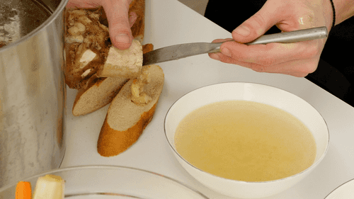 Потофе подавать отдельно: на поджаренный хлеб намазать костный мозг.