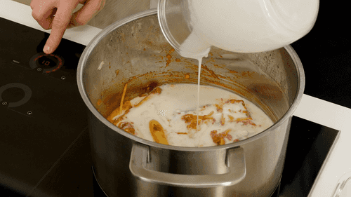 Влить кокосовое молоко, хорошо перемешать.