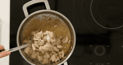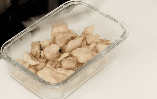 Затем переложить куриное мясо в чистую посуду.