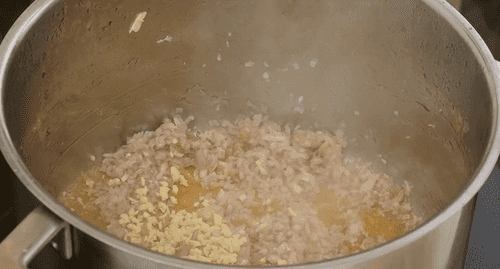 В той же кастрюле обжарить в течение 10 секунд на сильном огне измельченные шалот и чеснок.