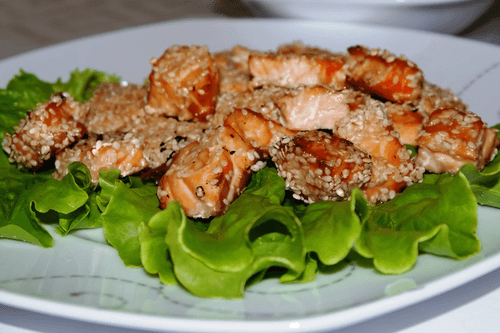 Сёмга в кунжуте — это изысканное блюдо китайской кухни, которое сочетает в себе гармонию вкусов и текстур. Нежное филе сёмги, пропитанное ароматным маринадом из соевого соуса, мёда и лимонной цедры, приобретает пикантную сладость с лёгкой цитрусовой ноткой. Обжаренные в кунжуте кусочки рыбы становятся золотистыми, создавая хрустящую корочку, которая прекрасно контрастирует с сочной мякотью. Кунжут придаёт блюду ореховый оттенок, усиливая его восточную утонченность. Это блюдо не только радует вкус, но и выглядит празднично — его можно подать как в повседневной трапезе, так и на торжественный ужин. Благодаря простоте приготовления и богатству вкусов, сёмга в кунжуте стала популярным выбором среди любителей морепродуктов и восточной кухни.