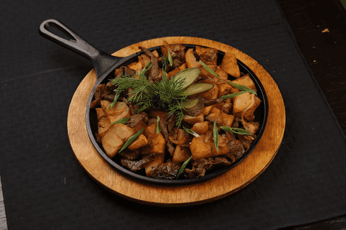 Жареха из говядины — это сытное и ароматное блюдо русской кухни, которое идеально подходит для уютного домашнего ужина. Его история уходит корнями в традиционную деревенскую кухню, где ценились простые и питательные блюда. Нежные кусочки говядины, обжаренные с луком и белыми грибами, наполняют блюдо глубоким, насыщенным вкусом, а золотистый картофель придает ему аппетитную текстуру. Особый акцент создаёт копченая паприка, придающая жарехе легкую дымную нотку, гармонично сочетающуюся с зеленью петрушки и свежестью томатов. Это блюдо прекрасно подойдет как самостоятельное угощение, так и в компании с хрустящими соленьями или ржаным хлебом, делая каждую трапезу настоящим наслаждением.