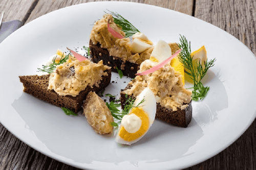 Русский форшмак – это изысканный вариант классического еврейского блюда, пропитанный русскими кулинарными традициями. Сельдь, муксун и омуль создают богатый, многослойный вкус с легкой солоноватостью, дополненной сладкими нотками печеных яблок и цветочного меда. Белый хлеб, пропитанный сливками, делает текстуру нежной и воздушной, а перепелиное яйцо и лук-сибулет добавляют утонченность. Исторически форшмак был символом домашнего уюта в еврейских семьях, его подавали как закуску на праздничных столах. В русском варианте он приобретает особую глубину за счет использования бородинского хлеба, придающего блюду насыщенный ржаной оттенок. Его можно подавать как элегантное угощение или уютную закуску, идеально сочетающуюся с традиционными напитками и душевными беседами.