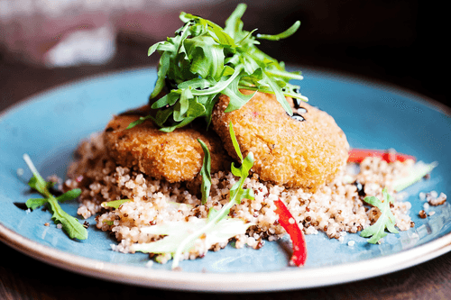 Возможно подать котлеты на тарелку, добавить пару ложек отварной киноа и украсить рукколой.
