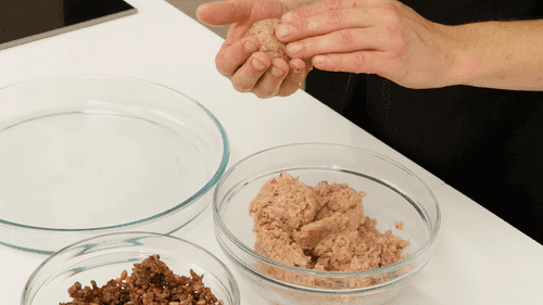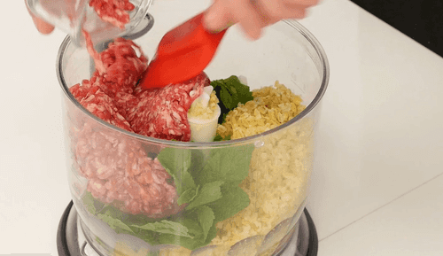 Смешать булгур с оставшимся фаршем, крупно нарезанной луковицей, мятой.