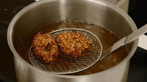Разогреть растительное масло до 180 градусов и обжарить в нем киббех в течение 10 минут.