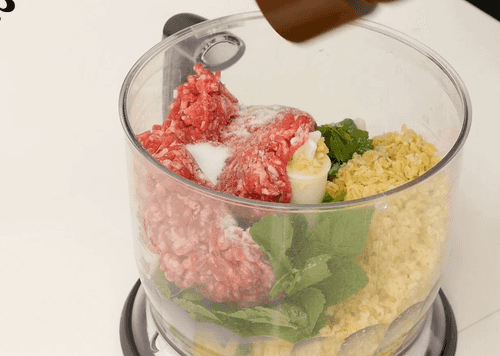 Добавить чайную ложку соли и перец, пробить в блендере до консистенции теста. Если масса получается слишком сухой, можно добавить в блендер кубик льда.