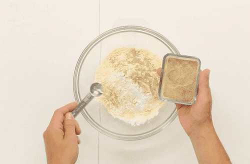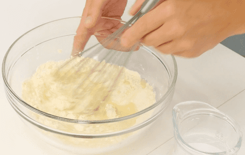 Смешать кукурузную и пшеничную муку. Добавить крахмал, чайную ложку соли. и половину чайной ложки белого перца.