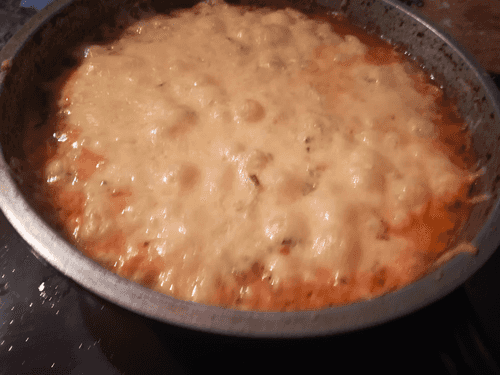 На терке натереть кабачок и сыр, выложить поверх фарша.