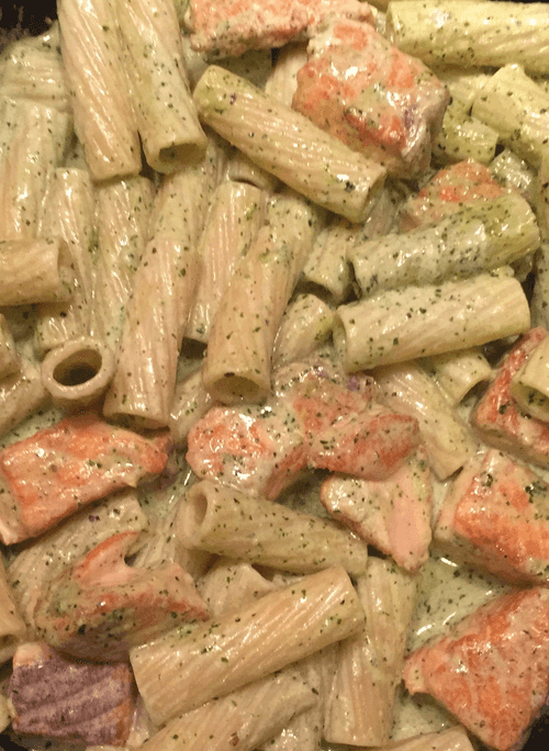 Паста с лососем в сливочном соусе с песто