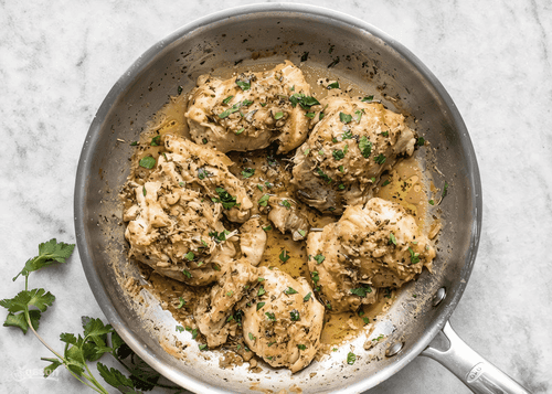 Куриные бедра на сковороде – это простое, но восхитительное блюдо европейской кухни, которое покоряет своей насыщенной вкусовой палитрой. Сочная курица, пропитанная ароматом чеснока и итальянских специй, приобретает аппетитную золотистую корочку. История таких рецептов уходит корнями в традиционные деревенские кухни Европы, где ценили простые ингредиенты и богатый вкус. Легкость приготовления делает его отличным выбором для ужина в кругу семьи или дружеских встреч. Подача с петрушкой придает свежесть, а сливочное масло добавляет нежности. Это блюдо гармонично сочетается с овощами, картофельным пюре или хрустящим багетом, позволяя насладиться каждым кусочком и окунуться в атмосферу домашнего уюта.