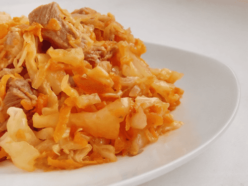 Тушеное мясо с картофелем и капустой