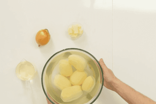 Нарезанную картошку поместить в глубокую посуду и залить холодной водой, чтобы избавиться от лишнего крахмала. Оставить на 30–40 минут.