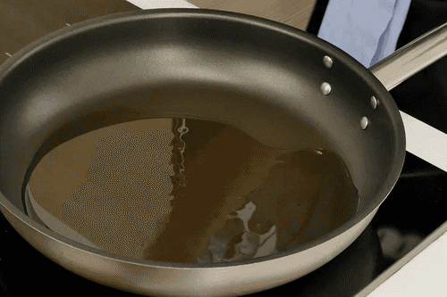 В толстостенной плоской сковороде на сильном огне разогреть растительное и сливочное масло.