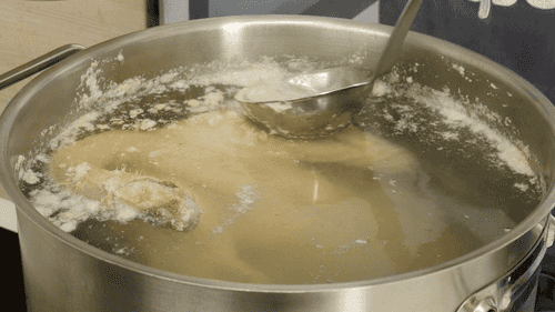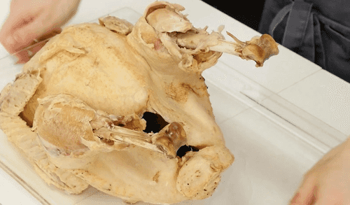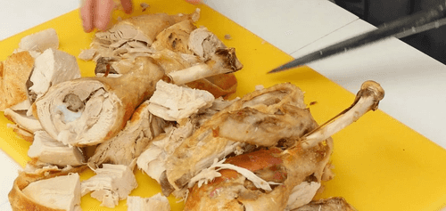 Бульон процедить и остудить его и птицу отдельно. С индейки срезать лишний жир, он пригодится позже.