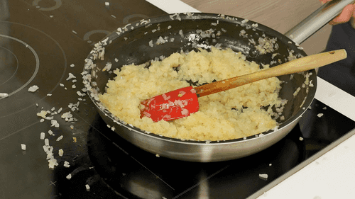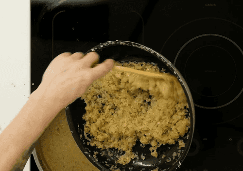 На сковороде растопить индюшачий жир и обжарить на нем измельченный лук до слегка золотистого цвета.