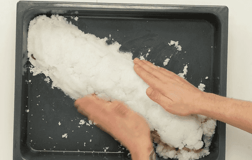 На соляную подушку выложить выпотрошенную рыбу.