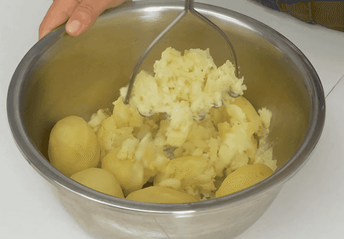 Картофель очистить и сварить в подсоленной воде. Затем натереть его на мелкой терке или продавить через картофельный пресс, дать остыть.