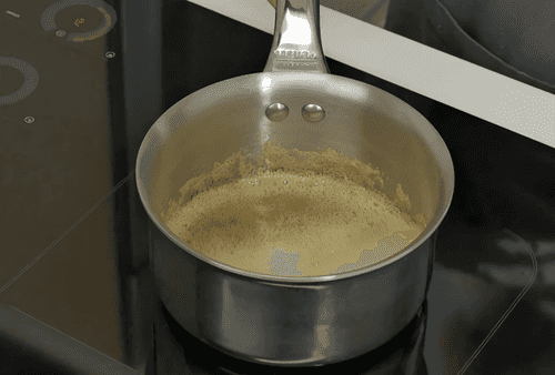 100 грамм сливочного масла поджарить в сотейнике до яркого орехового аромата и карамельного цвета.