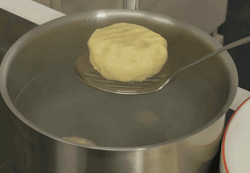 Картофельное тесто раскатать в толстую колбасу и нарезать кружками примерно 2 см толщиной. Сделать углубление в тесте, положить примерно 1 столовую ложку луковой начинки, защипнуть края, собрав тесто в мешочек, и сформовать шарики.