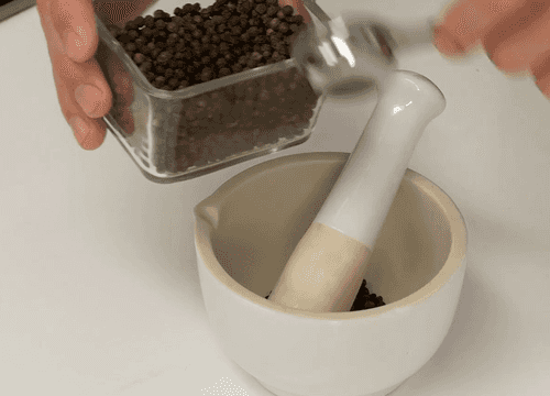 Влить бренди и выпаривать его еще 2 минуты, затем добавить бульон и перец, довести до кипения и варить еще 2 минуты.