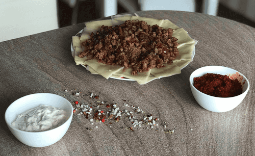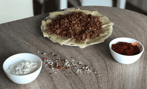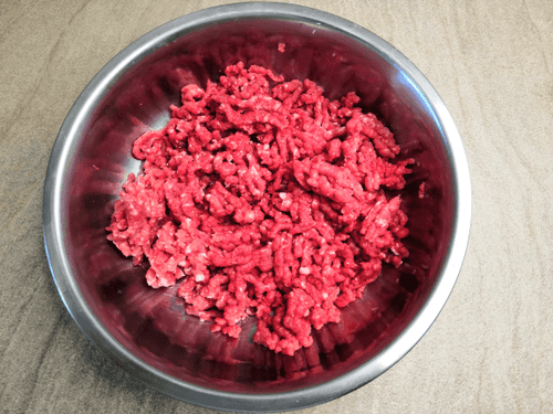 Из куска говядины сделать фарш. На золотистый лук выложить мясо в виде подушки, посолить и поперчить (2–3 щепотки), смешать и жарить до золотистой корочки.