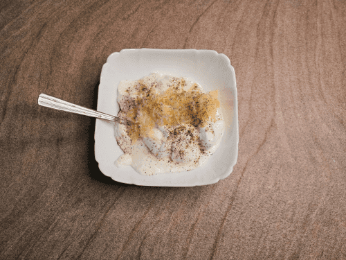 Сделать соус. Измельчить чеснок (2–3 дольки), добавить к сметане, посолить, поперчить (2–3 щепотки), смешать. Соус готов.