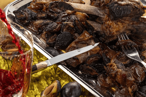 Сливы в этом рецепте придают мясу удивительный кисло-сладкий оттенок и способствуют его нежности. Это яркое угощение идеально подойдет для праздничного стола и стало частью нашей коллекции «Меню на юбилей».