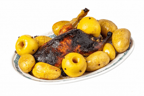 Утка с яблоками и картофелем