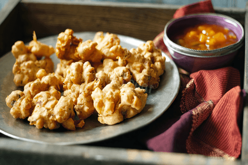 Подавать слегка или совсем остывшими с йогуртовым соусом или индийским соусом чатни.