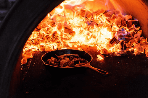 Поставить сковороду в разогретую до максимума духовку примерно на 10 минут. Следить, чтобы креветки не пересушились. Как только ракушки раскроются, соте готово, можно вынимать.