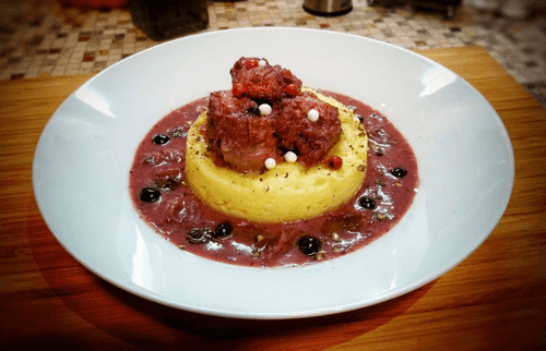 Утка, тушенная в красном вине с луком и смородиной