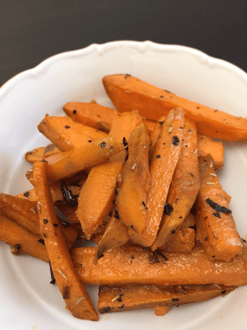 Обжаривать, постоянно помешивая, до полной готовности. В конце готовки можно убавить огонь и потомить батат несколько минут под крышкой.