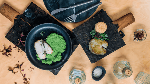 Стейки из малоглазого макруруса – это изысканное блюдо европейской кухни, обладающее нежной, воздушной текстурой и тонким, слегка сладковатым вкусом. Макрурус – редкая рыба с мягким мясом, которое идеально подходит для жарки, сохраняя сочность внутри золотистой корочки. Гарнир из пюре зеленого горошка придаёт блюду свежесть и бархатистость, а кускус с морковным соусом – лёгкую сладость и изысканный аромат. Вкусовая палитра этого блюда сочетает мягкость рыбы, кремовую текстуру гарниров и приятные оттенки специй. Подобные блюда часто готовят в средиземноморской кулинарии, где ценят простоту, изысканность и натуральные вкусы. Подавать лучше с белым вином или легким овощным салатом, чтобы подчеркнуть богатый вкус рыбы и её нежную текстуру.