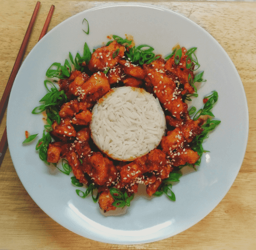 Острая курица в китайском стиле — это настоящая феерия вкусов, объединяющая хрустящую текстуру обжаренной грудки с насыщенным пикантным соусом. Блюдо уходит корнями в китайскую кулинарную традицию, где баланс между сладким, острым и пряным играет ключевую роль. Обжаренная курица, покрытая ароматной смесью чеснока, кунжутного масла, шрирачи и меда, приобретает аппетитную карамелизированную корочку и насыщенный вкус. Посыпанная кунжутом и свежим зеленым луком, она не только радует вкус, но и выглядит потрясающе. Это блюдо отлично сочетается с пресным рисом или лапшой, создавая гармоничный контраст. Идеальный выбор для любителей китайской кухни, желающих ощутить взрыв вкуса в каждом кусочке!